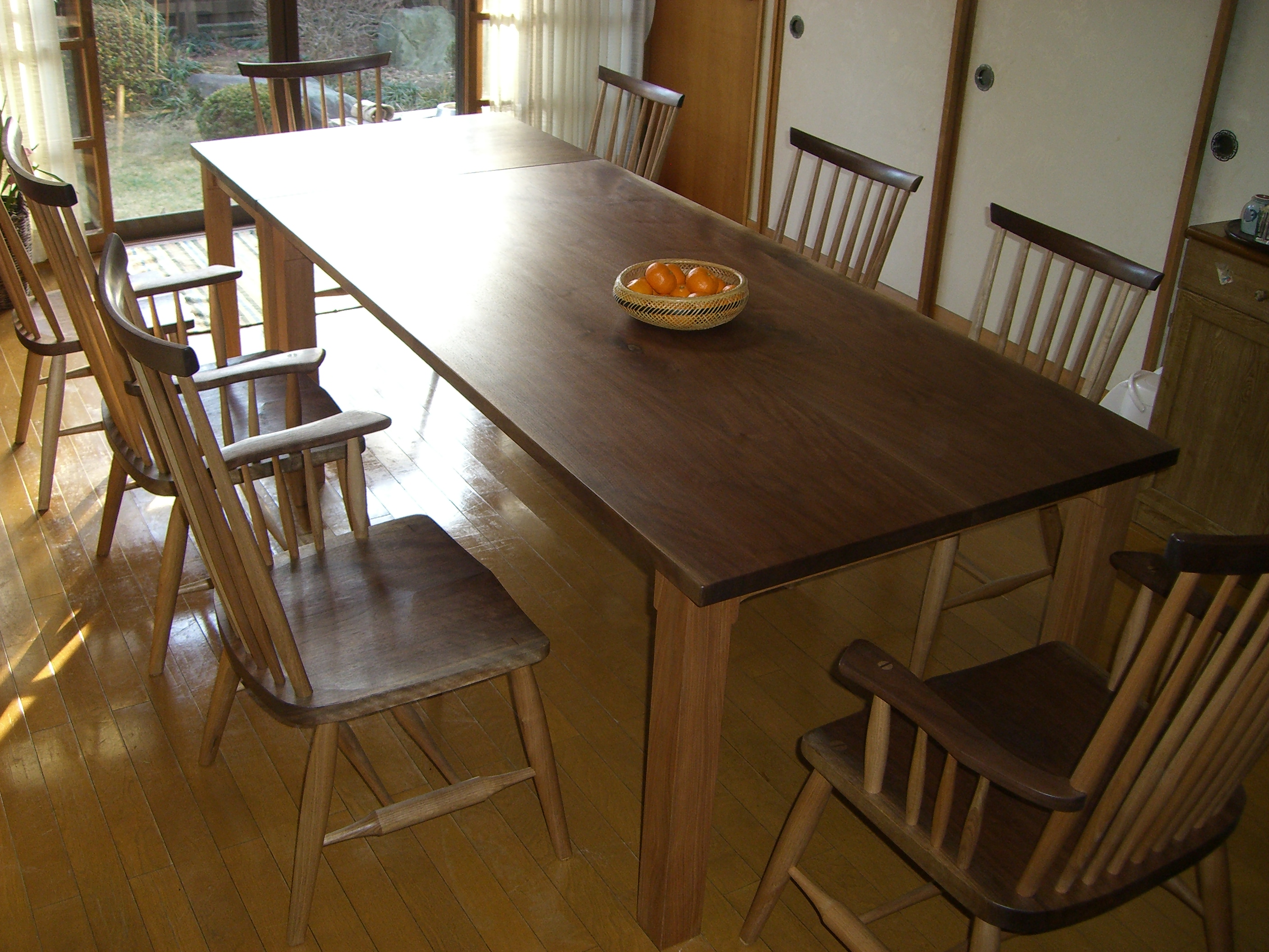ウォールナットのダイニングテーブルと椅子のセットを松本市内に納品してきました。