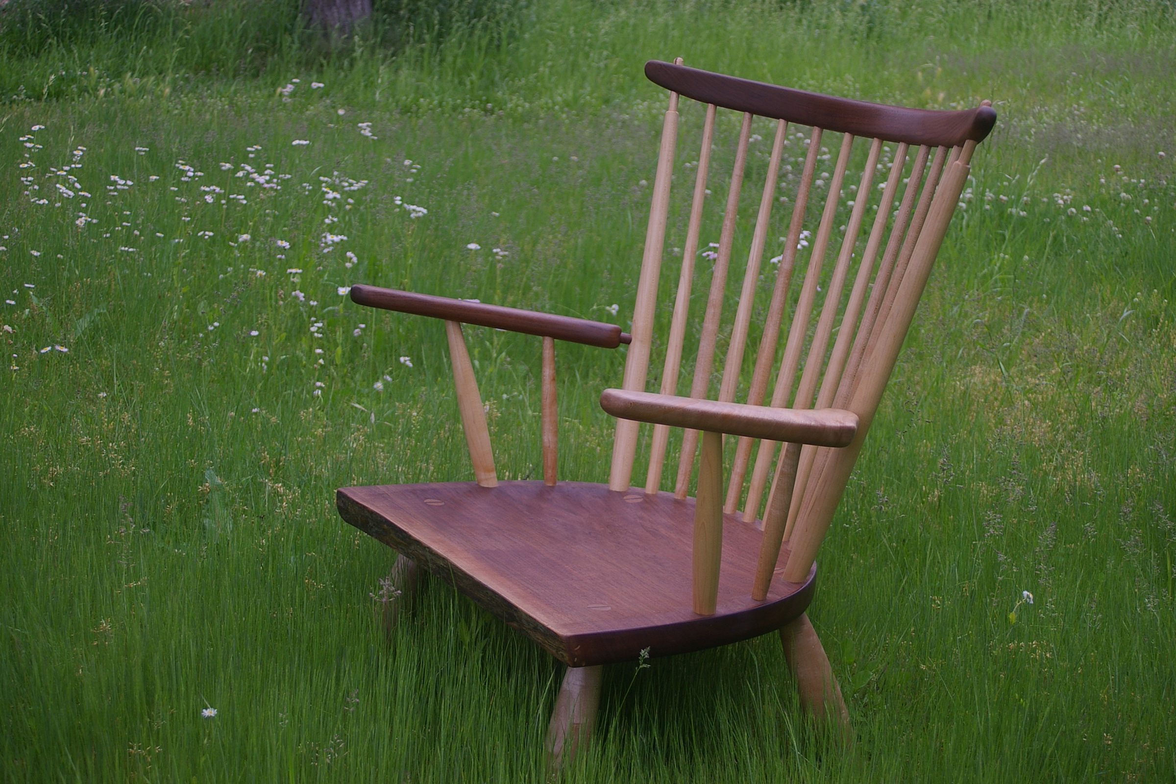 イージーチェアー (かえで・ウォールナット) 参考価格¥130.000− アーム部分は、左右で異なる木を使っています。