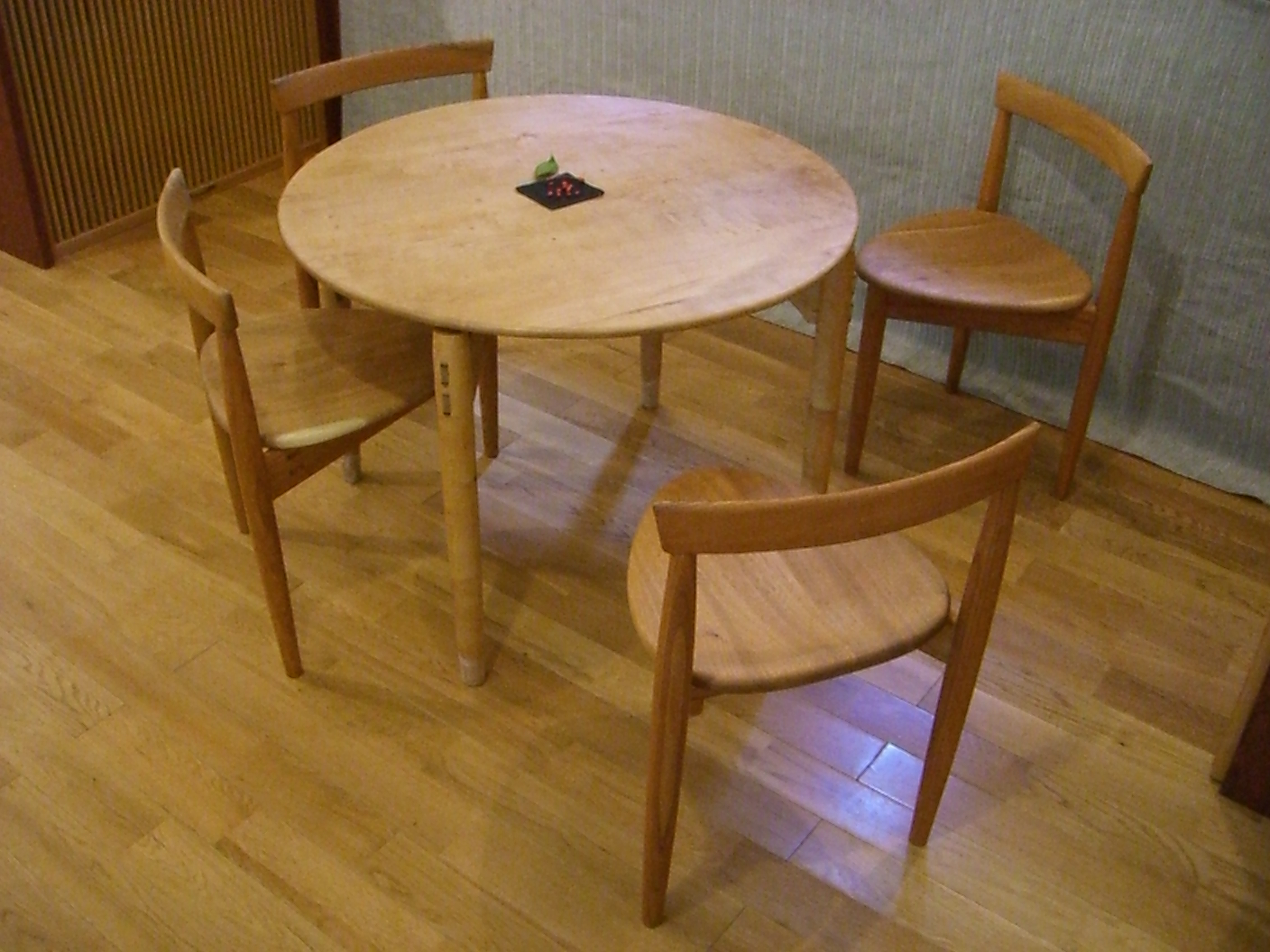 丸テーブル かえで 参考価格¥120.000− 三脚椅子 ケヤキ・くるみ 参考価格¥50.000−(現品に限ります)